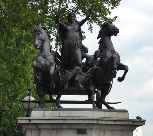 Boudica, o Boadicea, fue una reina de la tribu britana de los icenos, que habitaba el actual condado de Norfolk, este de Inglaterra, durante la época del reinado del emperador Nerón. Su marido, Prasutagus, rey de los icenos, pertenecía a la nobleza indígena. Dicen de ella que era una mujer grande, muy fornida, con una estatura muy por encima de la media romana. Tenía una voz dura y una mirada realmente enajenada, y un hermoso pelo rojo que le llegaba hasta la cintura. Según Taton Dion Casio y Tácito, Boudica presentaba una inteligencia más grande de la que normalmente tenían las mujeres.